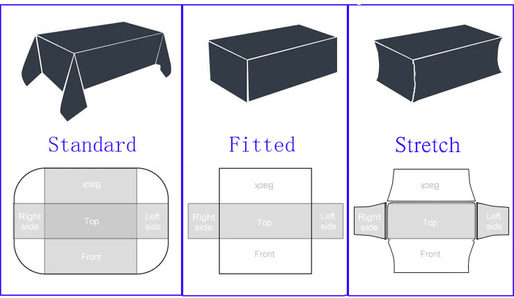 What's one of the best ways to attract customers and showcase your valuable goods? The table skirt we have to offer can easily handle those needs! Hundreds of products are currently in stock, ready and waiting for you to browse through them to find your ideal product. Choose from tablecloths, throws, skirting, and runners as well as table skirt with full bleed imprint allows for photo quality products. Making sure that we have the trade show products that can be used anywhere and anytime is one of our business goals. Check out our economy tablecloths as well as our custom printed throws that can be built to suit your every business need. Purchase table coverings at wholesale prices online right now. These Table Skirts Transform Trade Show and Banquet Tables!