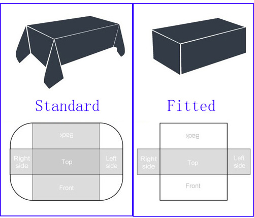 Your custom design may cover the entire tablecloth, and is not limited to the front panel (see images).