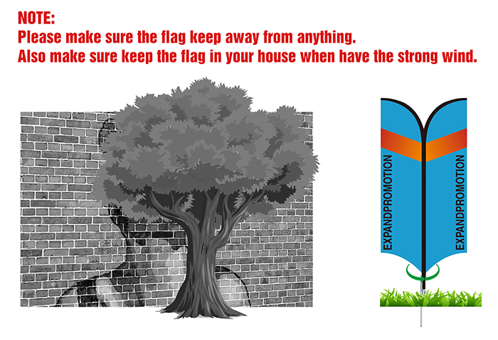 5.Stake can be forced in by hand. 6. Place assembled flag onto bearing part of base.