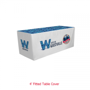 This table cover, also known as a tablecloth, is printed using a full-color dye-sublimation procedure.