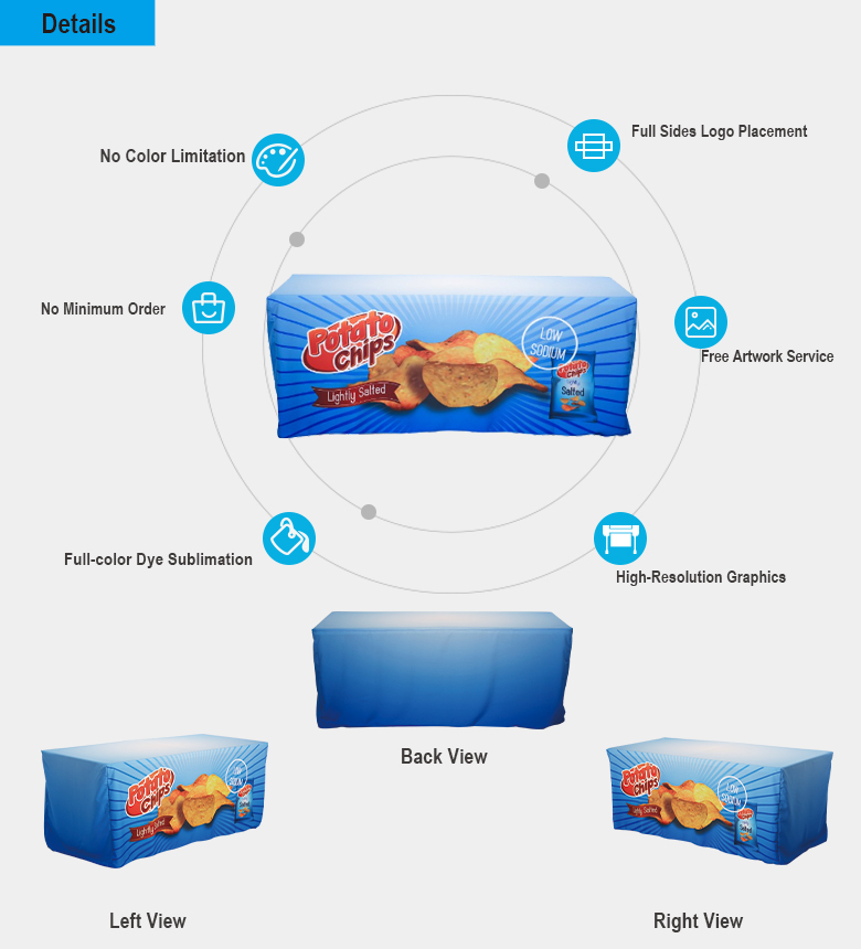 By using banquet covers on your display, this-these custom table skirt can hide older and worn surfaces while still keeping the price incredibly affordable.