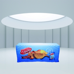 This table skirt, also known as a tablecloth, is printed using a full-color dye-sublimation procedure.