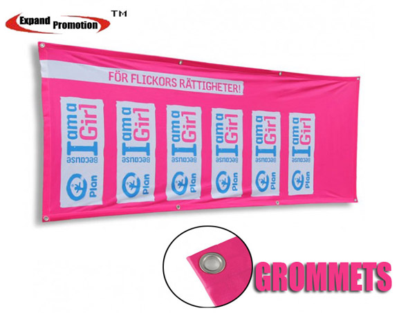 Banners come standard with sewn edges and grommets every few feet. Upon request, Fabric Banners can be flush cut using hot knife edge-finishing (by heating