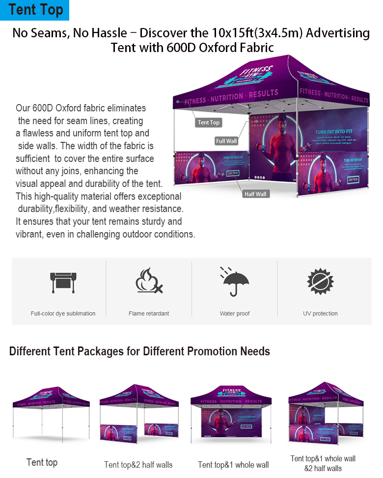 Note:The fabric of roof is 600D oxford ,it is full printing and no joining so that it can't break the image perfection.