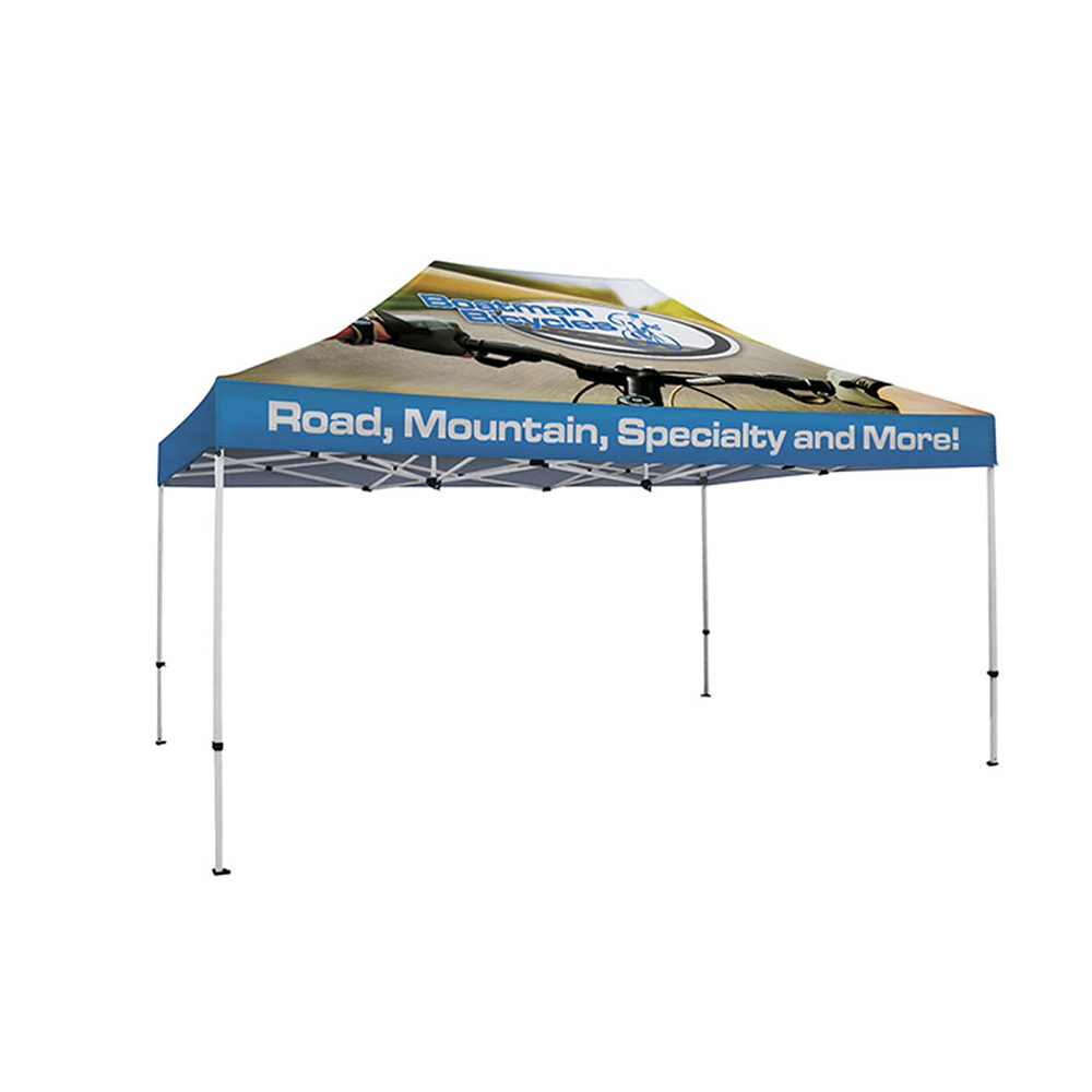 The customizable outdoor pop-up canopy offers full vivid color printing on all four sides of the canopy and valance – this creates an all-around 360-degree brand-enhancing opportunity.