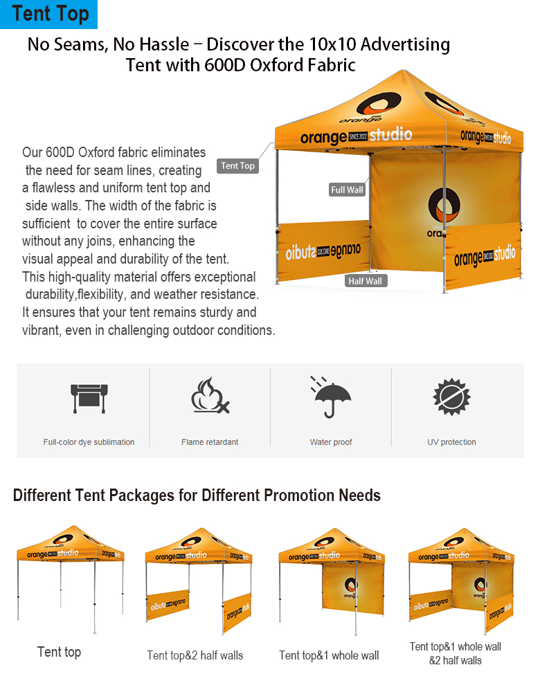 Note:The fabric of roof is 600D oxford ,it is full printing and no joining so that it can't break the image perfection.