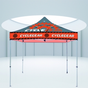 The customizable outdoor pop-up canopy offers full vivid color printing on all four sides of the canopy and valance – this creates an all-around 360-degree brand-enhancing opportunity.