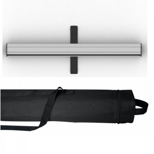 Roll up display stand is constructed from anodized aluminum and has two flip out feet for stability.