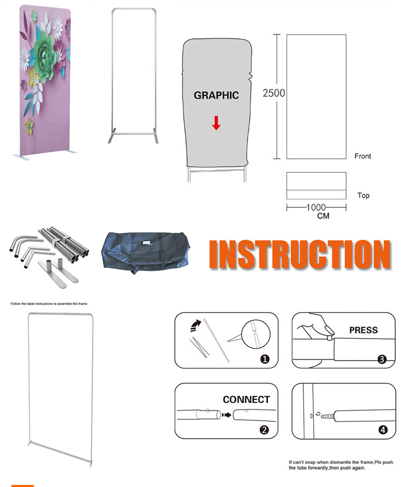 Price include aluminium tube frame, 250g fabric with sublimation printing(sigle side artwork,another side is white fabric ) .