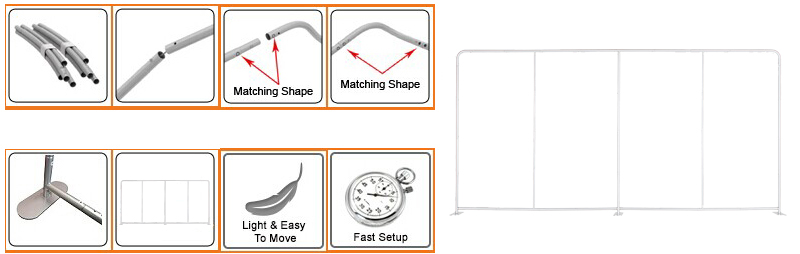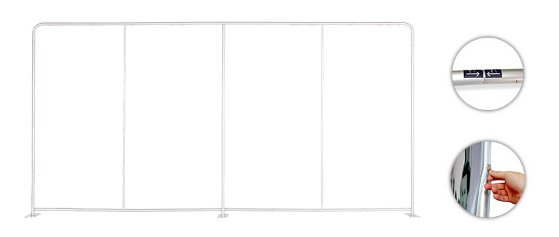 Customers can easily assemble this trade show display by pulling the stretch fabric cover over the aluminum tube frame design.