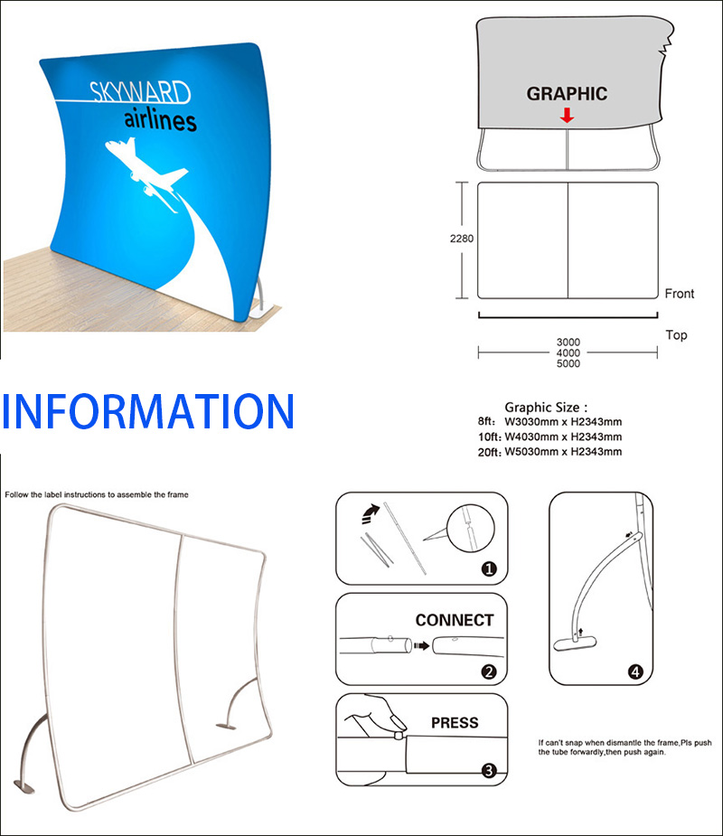 Price include aluminium tube frame, 9 oz fabric with sublimation printing(sigle side artwork,another side is white fabric ) . Lead-time:7-10working days!